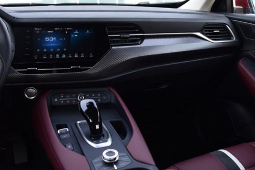 而F7x的中控布局呼应了外观上的运动感。第一眼看到整个中控,给人的感觉就是很有设计感:更偏向驾驶员一侧的中控台设计,大面积的炭纤维花纹饰板,三幅方向盘,全液晶仪表,嵌入式中控屏,电子档把,以及座椅和门板上的拼色装饰,细节上随处可见的缝线,都能让人在看到的第一瞬间产生“还挺运动”的感觉。另外内饰用料上也是“以软为主”的风格,具有不错的品质感。