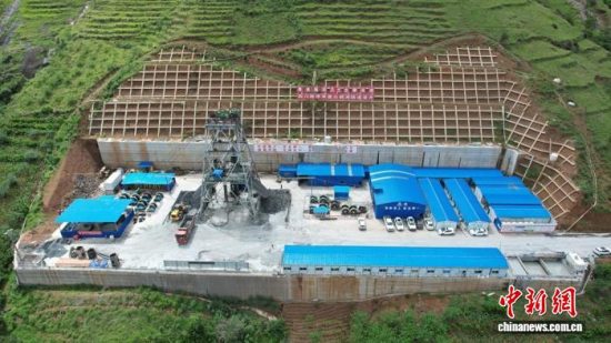 宜攀高速公路深达547米的白鹤滩隧道竖井施工作业现场之一。蜀道集团供图