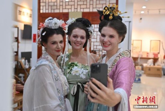 近日,在吉林长春的松盛汉服文化艺术馆,几位来自德国的女士在生日派对上拍摄了一组汉服写真,飘逸的服饰与笑声交织在一起,令人难忘。