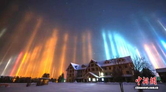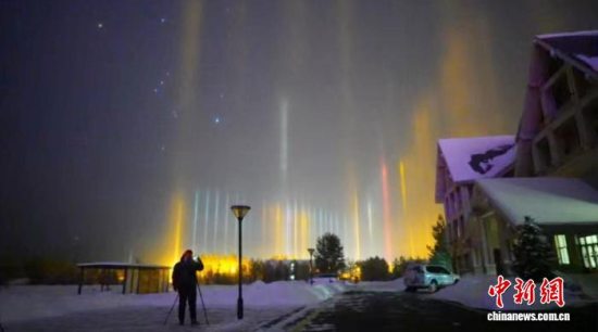 据悉,“寒夜光柱”多发生在寒冷地区冬夜,是一种可与极光比肩的冰晕现象。“寒夜光柱”通常在日落后的傍晚出现,由于空气中有很多漂浮的冰晶,这些小小的冰晶成了一个个反射体,对周围的路灯、霓虹灯、汽车灯光等光源进行反射,就会出现彩色光柱直上云霄的奇幻景象。“寒夜光柱”的形成是低温、强光源、悬浮冰晶与静风等条件共同作用的结果,并不常见。中新网漠河11月18日电(姜辉 邵天李)