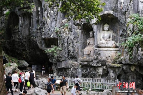 资料图:2024年7月,游客参观杭州飞来峰造像。林波 摄