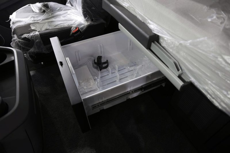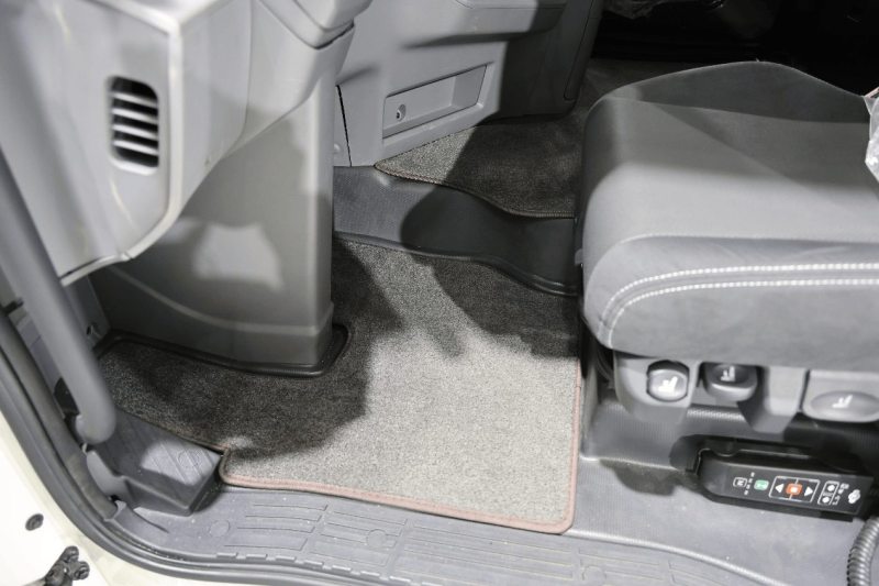 主驾座椅采用伊思灵NTS875气囊减震座椅,不论是在国内还是欧洲,都应该是天花板级别的座椅了,带多段阻尼调节、高度调节、一键充放气、通风加热和腰部支撑的功能,座椅表面为织物面料,比较符合欧洲人的用车习惯。