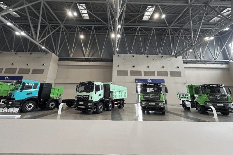 此次展出的另外3台工程车各有侧重,与核心标杆车型形成场景互补,共同构筑全场景重载运输矩阵。东风天锦 KC 自卸车(ZG3N)专攻山区能源、矿产运输,玉柴 YCS07L 300 发动机(300Ps 马力、1200N・m 扭矩)搭配法士特 12JS 变速箱,配合 700L 高强度钢车架,动力与承载性能双优;东风天锦纯电自卸车(KT6A)聚焦砂石料、矿产中短途运输,宁德时代 282Kwh 电池 + 众联 360kW 峰值功率电机,搭配 8+6 双层车架,双枪快充技术可快速补能,破解续航焦虑;东风天锦纯电自卸车(KT6C)适配短途砂石料转运,弗迪 182Kwh 长寿命电池 + 绿控 200kW 峰值功率电机,7+4 双层车架与 4.3 米可改箱长设计,兼顾可靠性与灵活性,成为城市周边运输的经济之选。