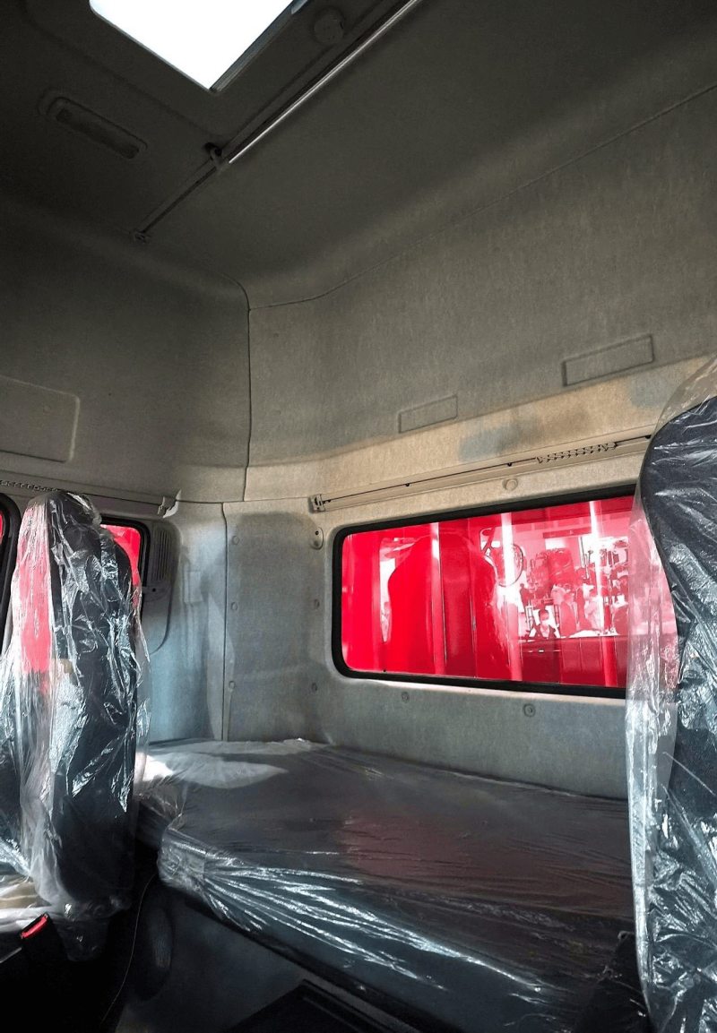 根据长途运输场景需求,其采用2460mm宽体四点悬浮驾驶室,高顶双卧,卧铺宽度达900mm,满足司机在车内长期工作休息的空间需求。另外,后桥采用复合空气悬架(钢板+气囊),兼顾减振和重载需求。在恶劣复杂道路工况下可以减少对货物的损伤,这也是高端冷链货品运输的必要配置。在货厢上,采用东风专汽生产的轻量化高强度保温箱,预埋钢骨架+气流导轨与板材整体发泡结构,地板承载强度高,能够使用叉车装卸货物,可以防止侧围胀箱。