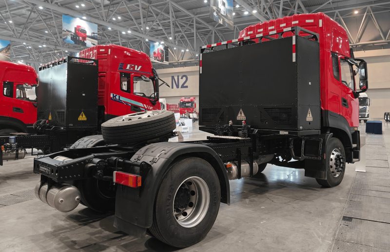 本次大会,针对港口集运这一特定场景,东风商用车展出了 “场景定义产品”的重磅车型——东风天龙KL纯电牵引车(充电版与换电版),以精准的定制化方案,解决港口运输的实际痛点。