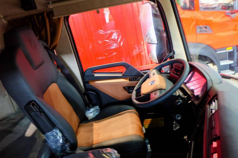 为此,东风天龙KX重型燃油载货车采用了行业领先的超大空间驾驶室,基于旗舰东风天龙KX王者平台,内部净高最高可达2115毫米,为驾驶员提供了充裕的头部与活动空间。配备的高端伊斯灵气囊减震座椅,具备通风、加热、多项调节功能,并采用亲肤皮质包覆,有效过滤路面振动,长途驾驶不易疲惫,让每一次出行都成为舒适体验。