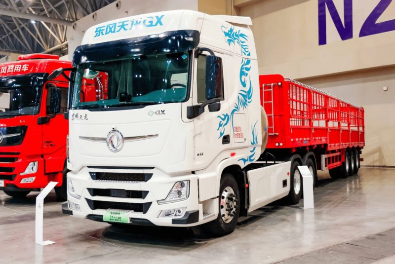 其中,东风天龙KX燃气牵引车和东风天龙GX智能干线牵引车作为传统能源车型的代表,用效能与智驾重构产品价值。