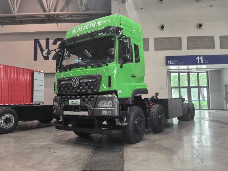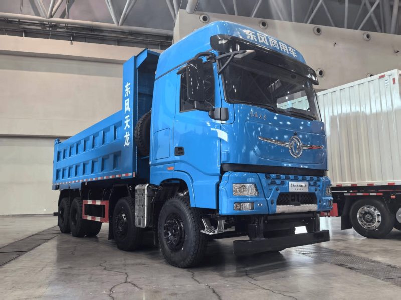 除上述新能源产品外,年会现场东风商用车亦展出了两款传统能源自卸车。东风天龙KC王者自卸车聚焦高原渣土、砂石料重载场景,搭载东康600马力发动机,最大扭矩2750牛米,匹配法士特13挡变速箱与汉德桥,强悍配置适配极端工况重载需求。