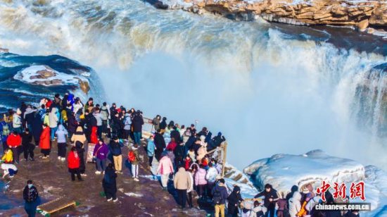 元旦假期陕西黄河壶口瀑布景区迎来大批游客。霍勇 摄