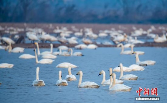 2025年12月24日,在湖南东古湖栖息的国家二级保护动物小天鹅。 刘科 摄