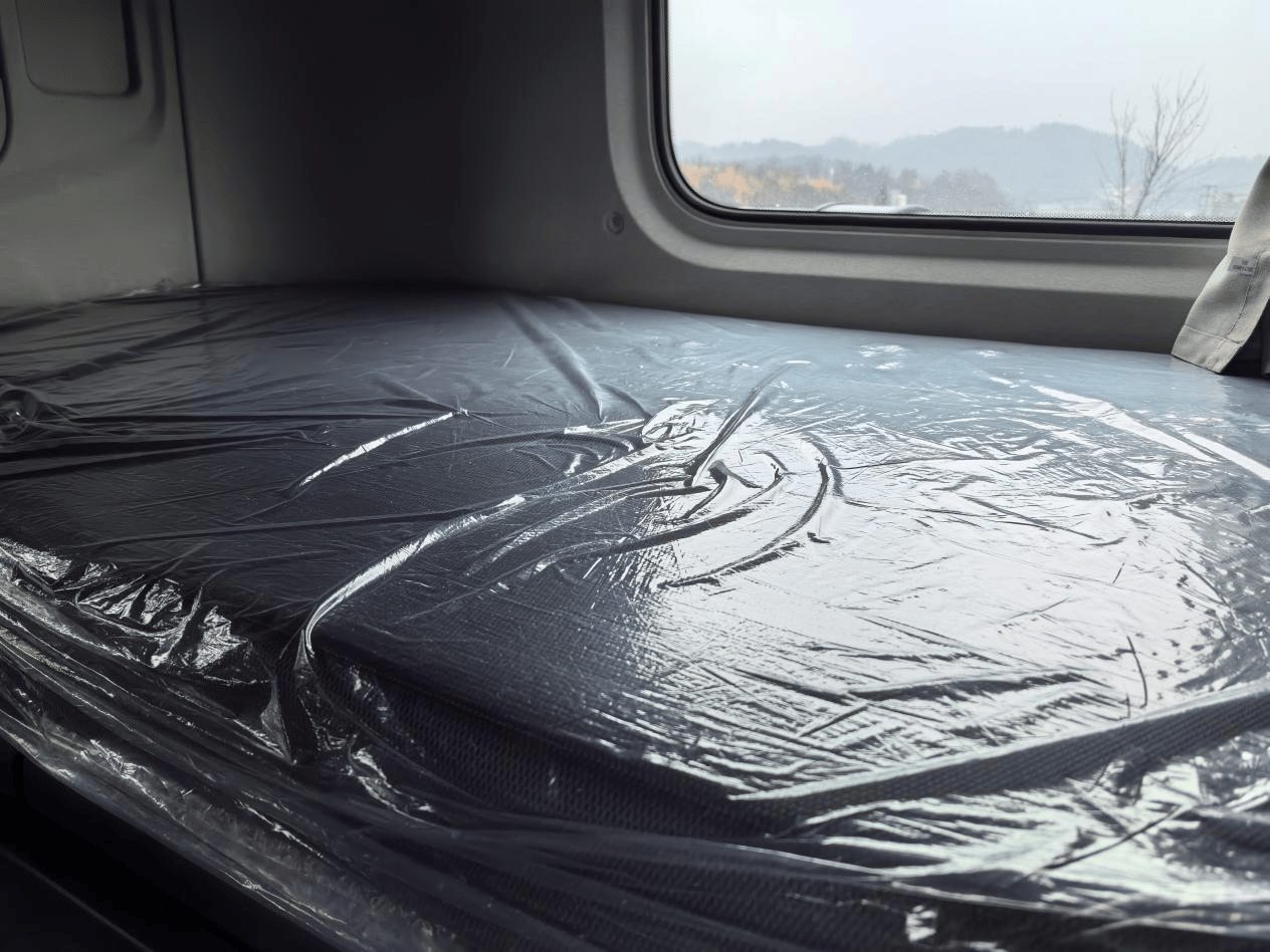 左侧A柱标配防疲劳驾驶监测;1m宽的卧铺搭配10cm加厚填充,即便长途休憩也能获得优质睡眠;床头多功能集成控制面板让调节灯光、温度更加便捷。1111L的储物空间分布合理,眼镜盒、隐藏式小桌板、晾衣杆等细节配置,让随车物品收纳井井有条。最令人惊喜的是SPA级人体工程学座椅,14项功能涵盖通风、加热、按摩(选装),24项调节维度可精准匹配不同身材驾驶员的需求,4D体感零压设计有效缓解长途驾驶疲劳。