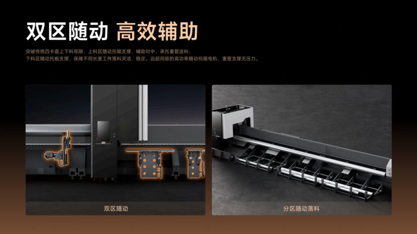 (*行业领创指截至2024年1月23日(邦德激光M系列首次发布时间),邦德激光首次发布系统解耦技术(即双工序并行加工技术),成为激光加工行业内第一家实现四卡盘双工序并行加工的企业。邦德激光M系列是市场上首款应用该技术的管材激光切割机。)