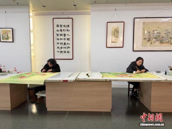 画师正在创作巨野工笔牡丹画。李明芮 摄